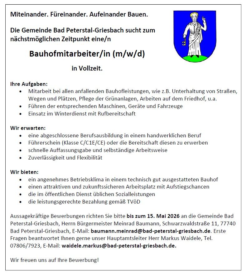 Stellenanzeige - Bauhofmitarbeiter/in ( m/w/d)